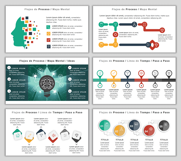 Acceso inmediato a Plantilla Power Point para Presentaciones con 200 Diapositivas de Diseño Único disponible en 5 combinaciones de colores para un Total de 1000 Diapositivas e iconos. (5 plantillas en total)